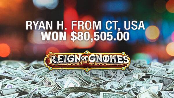 Three days after one of our slot players triggered a massive win playing Reign of Gnomes, another player made it onto our Recent Winners list playing the same game. On January 17, Ryan H. from Connecticut wagered $40 on the quirky 243-ways-pay slot and triggered the game’s lucrative bonus round. He collected $80,000 from the round, giving him a grand total of $80,505.