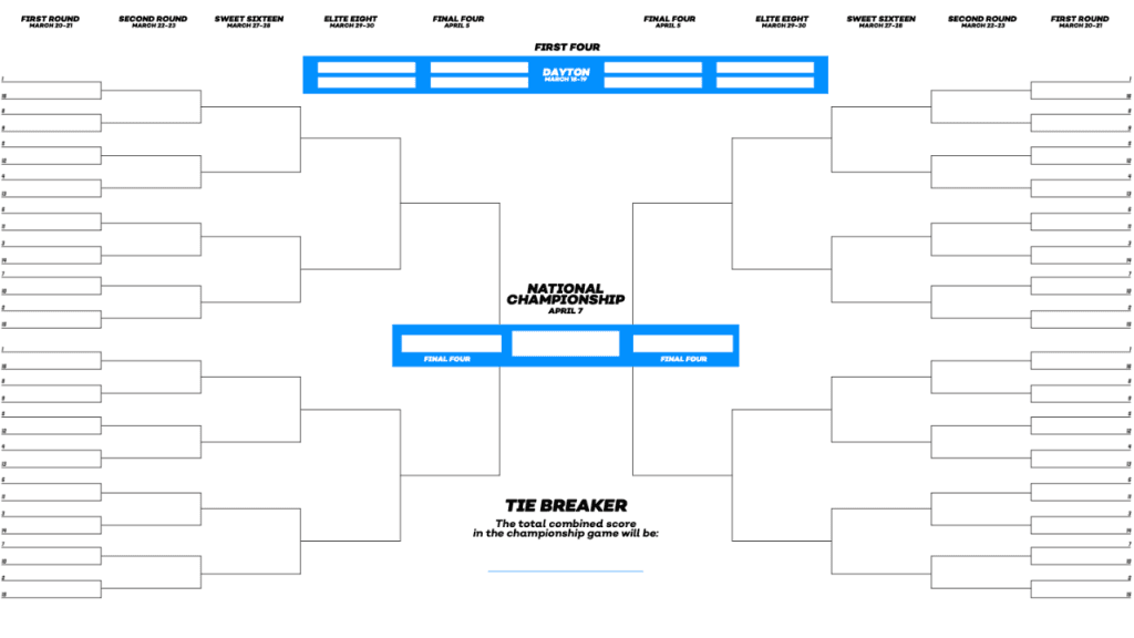 Download and print your blank 2025 March Madness Bracket now!
